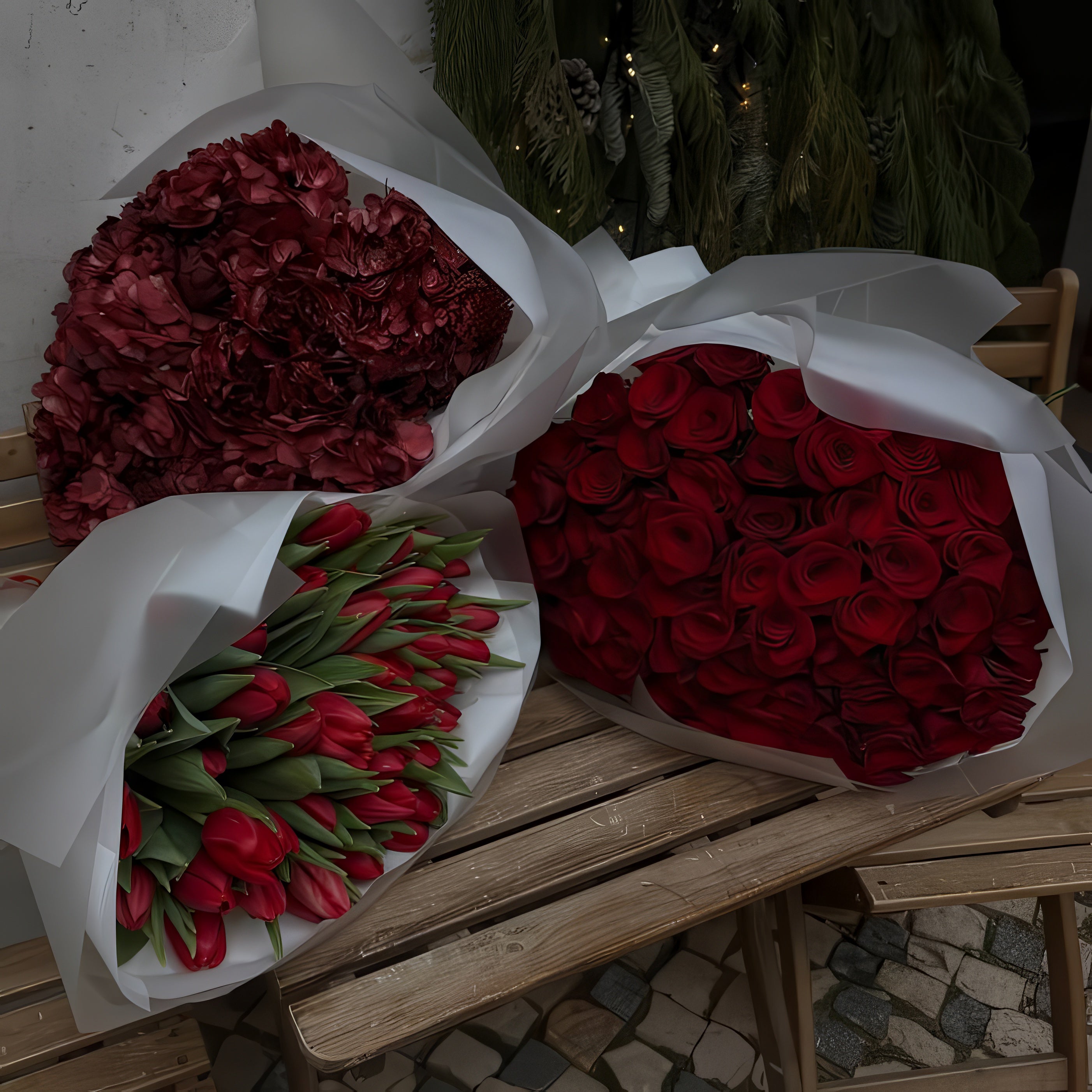 Designer flower bouquets and curated floral arrangements, combining seasonal flowers, texture, and...