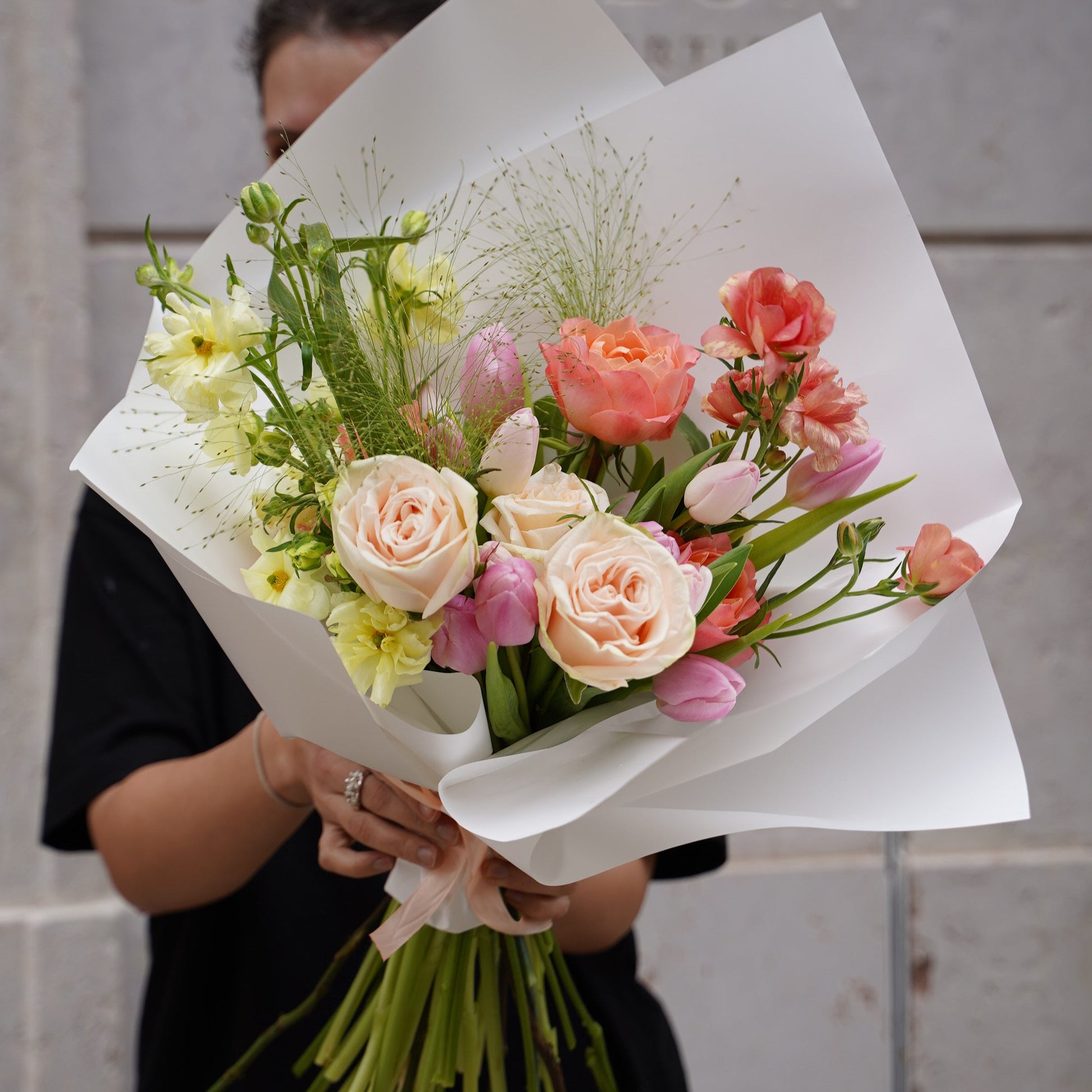 You choose the bouquet price, and our expert florists craft a stunning and unique arrangement for your loved one in a desirable budget. We'll handle the creativity, designing something special in our signature style. The bouquet may look different from the photos you see here, as it depends on the flowers we have available. However, we guarantee that it will be made precisely within the budget you selected.